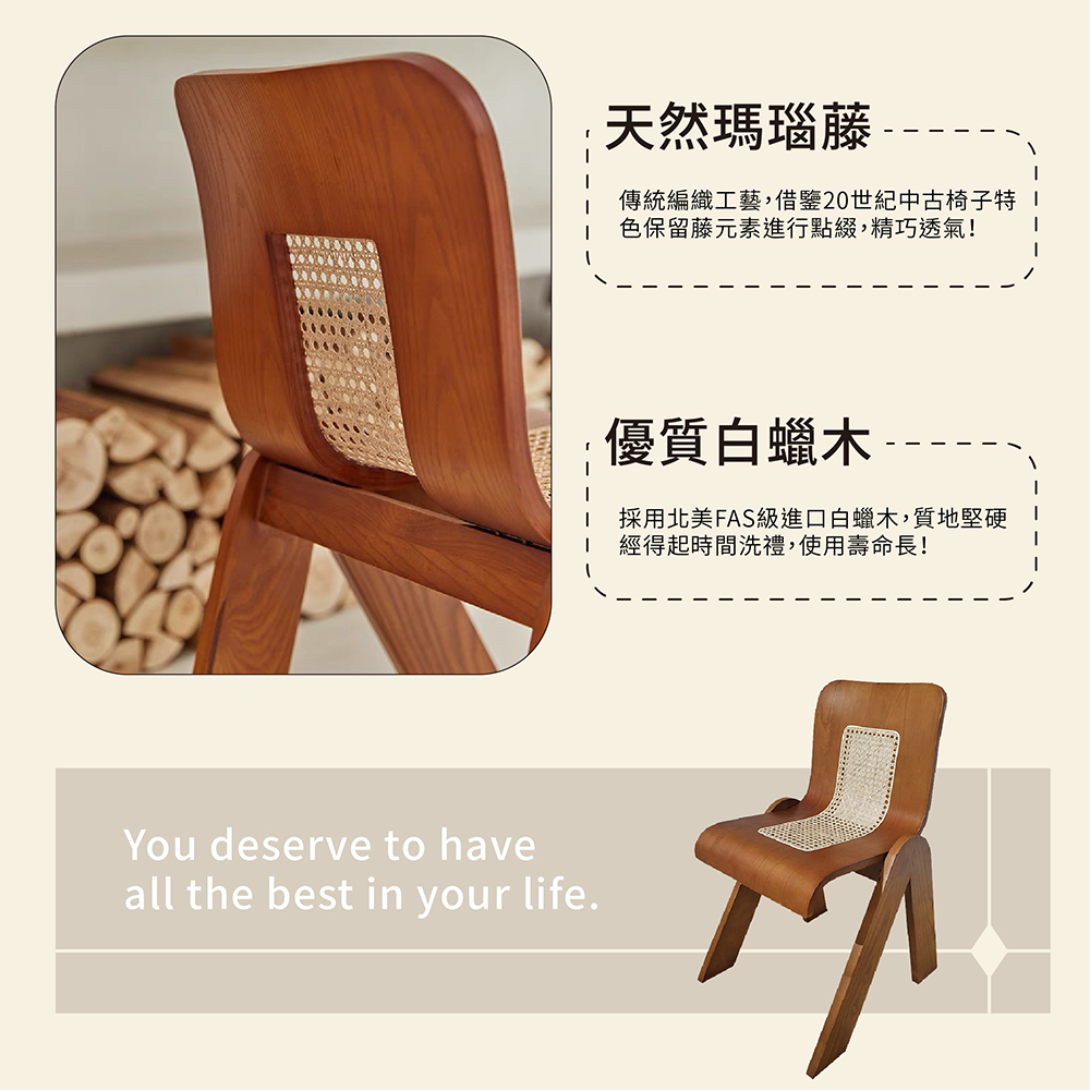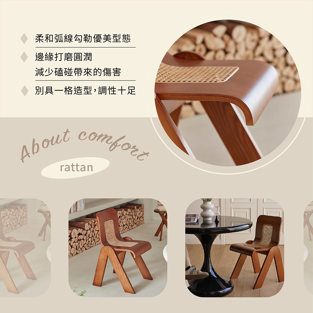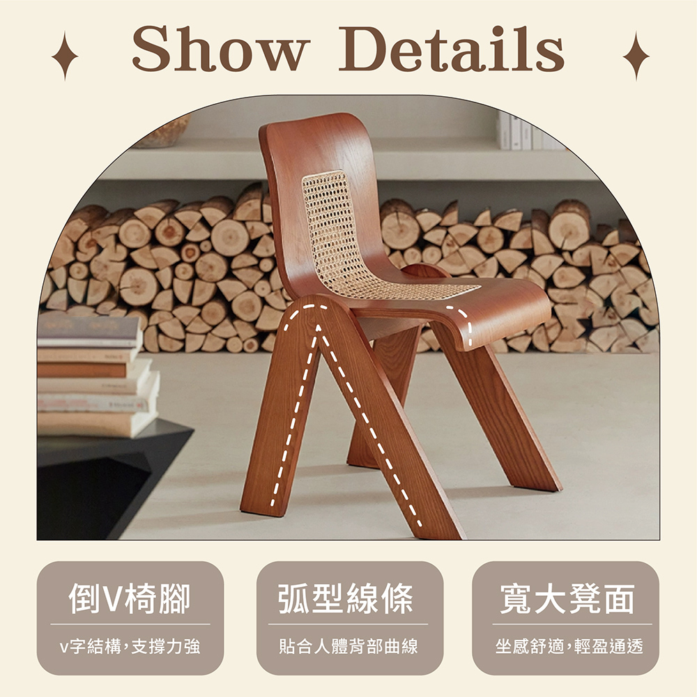 |復古V字藤編椅|