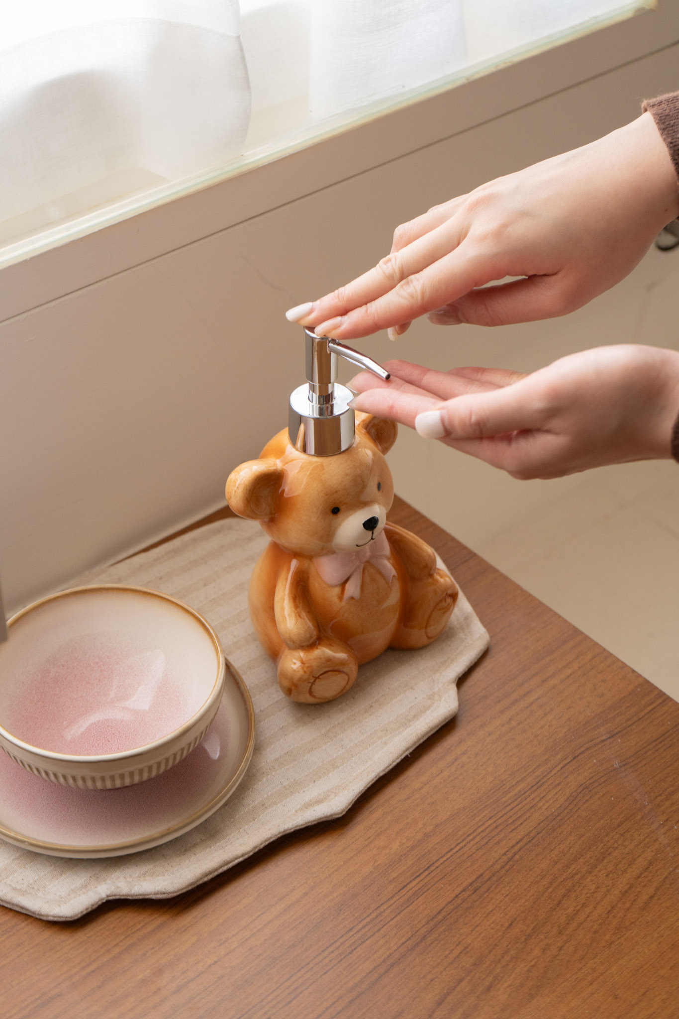 將可愛與實用完美結合,為日常清潔時光增添一抹溫柔。立體小熊造型圓潤討喜,靜靜擺放在洗手台或檯面上,就像一位療癒的小夥伴,為空間帶來好心情。