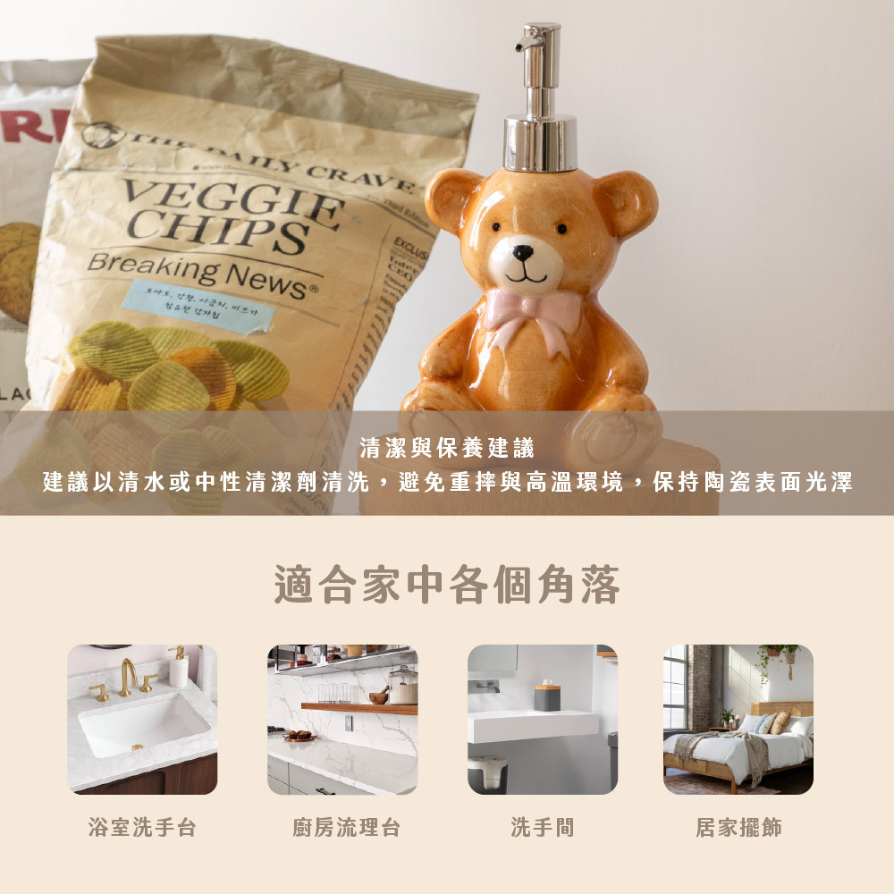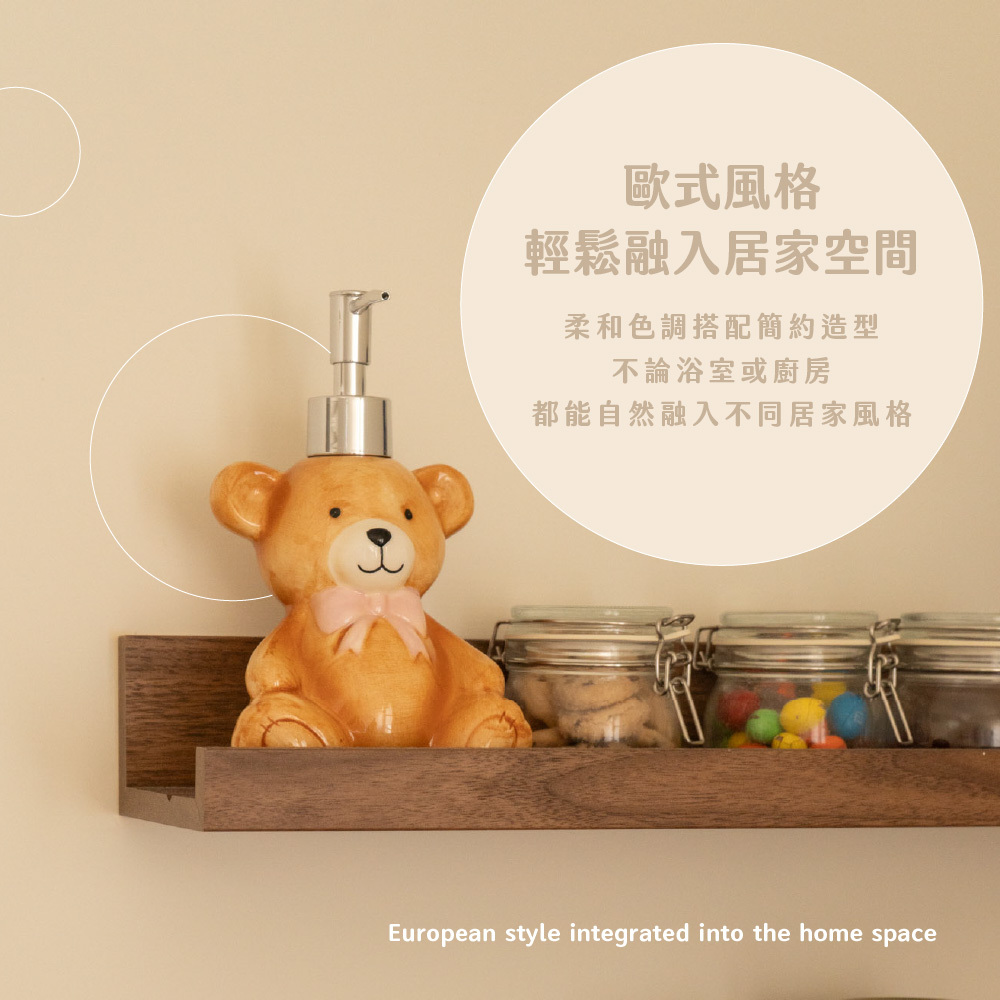 柔和色調與歐式可愛風格,能輕鬆融入浴室、廚房或客用洗手間空間,也非常適合作為送禮小物。Cute Ours 不只是按壓瓶,而是一份讓人會心一笑的生活溫柔,讓每一次使用,都多一點可愛與幸福感。