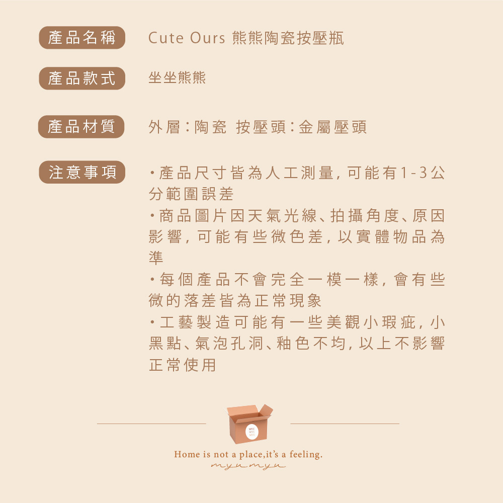 〔Cute Ours 熊熊陶瓷按壓瓶〕