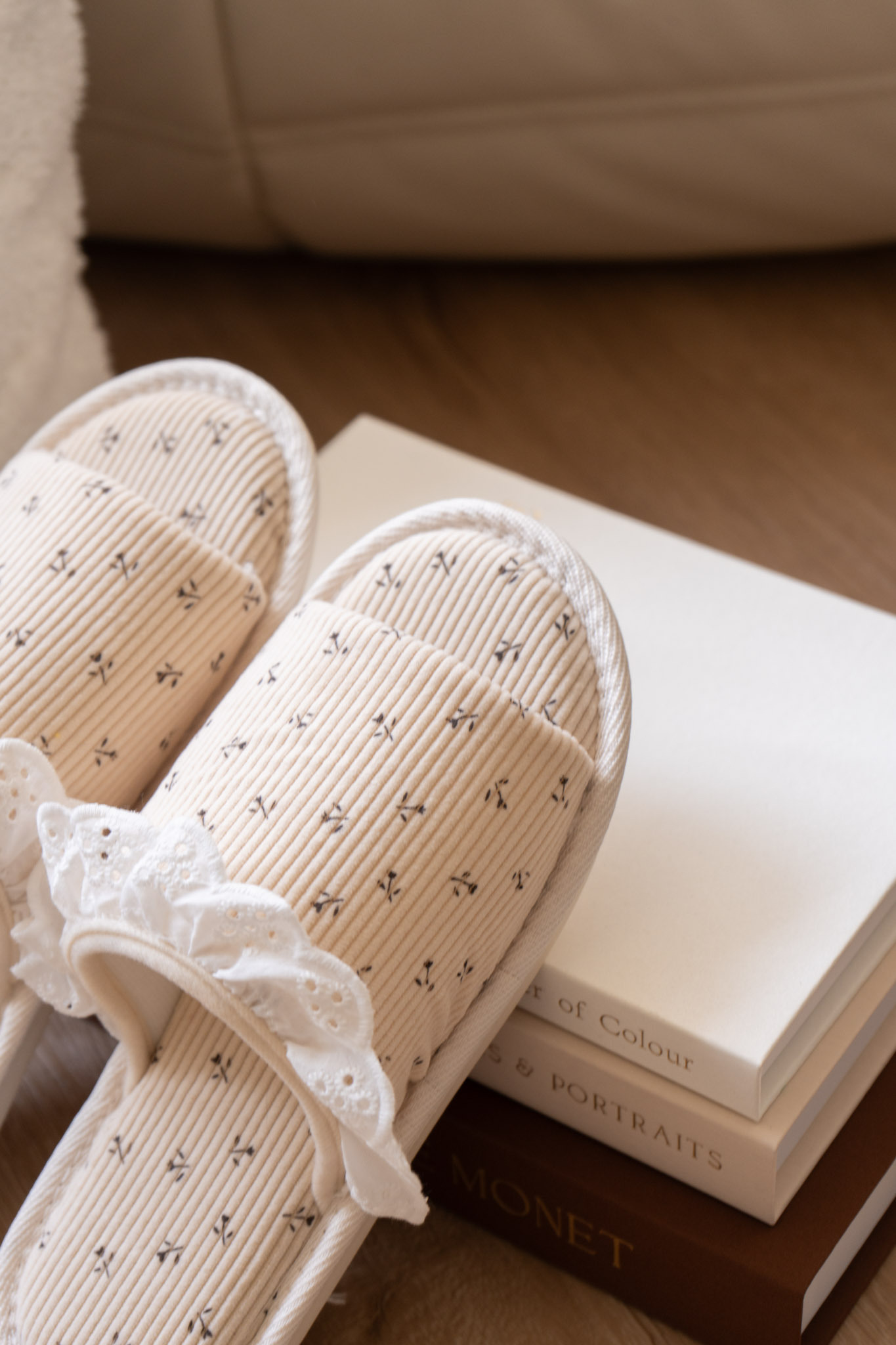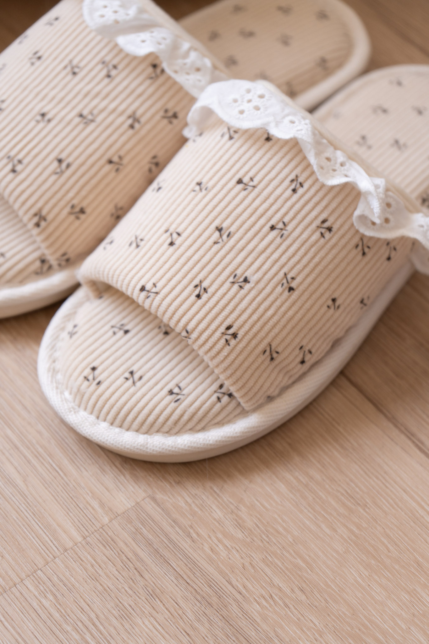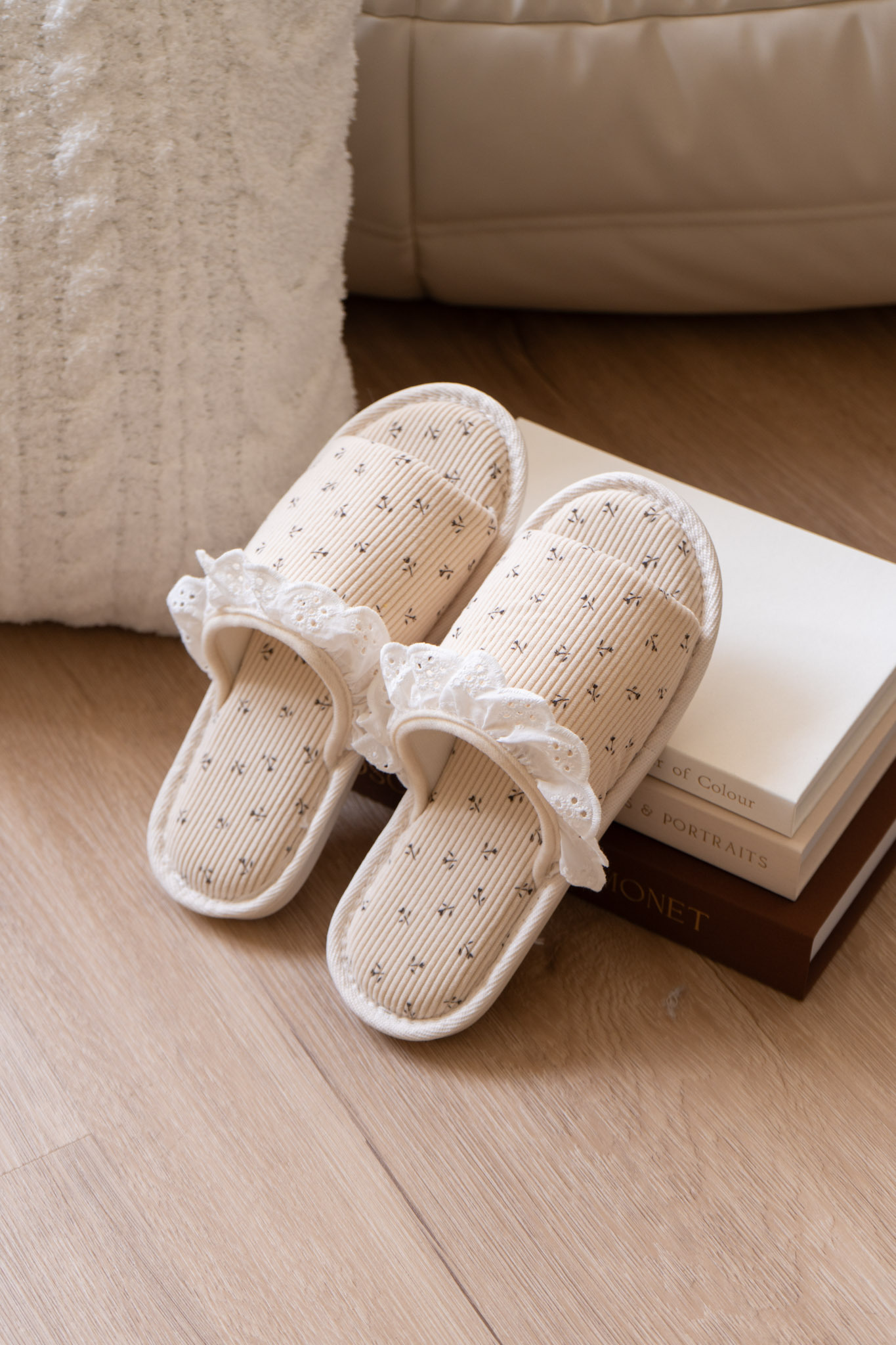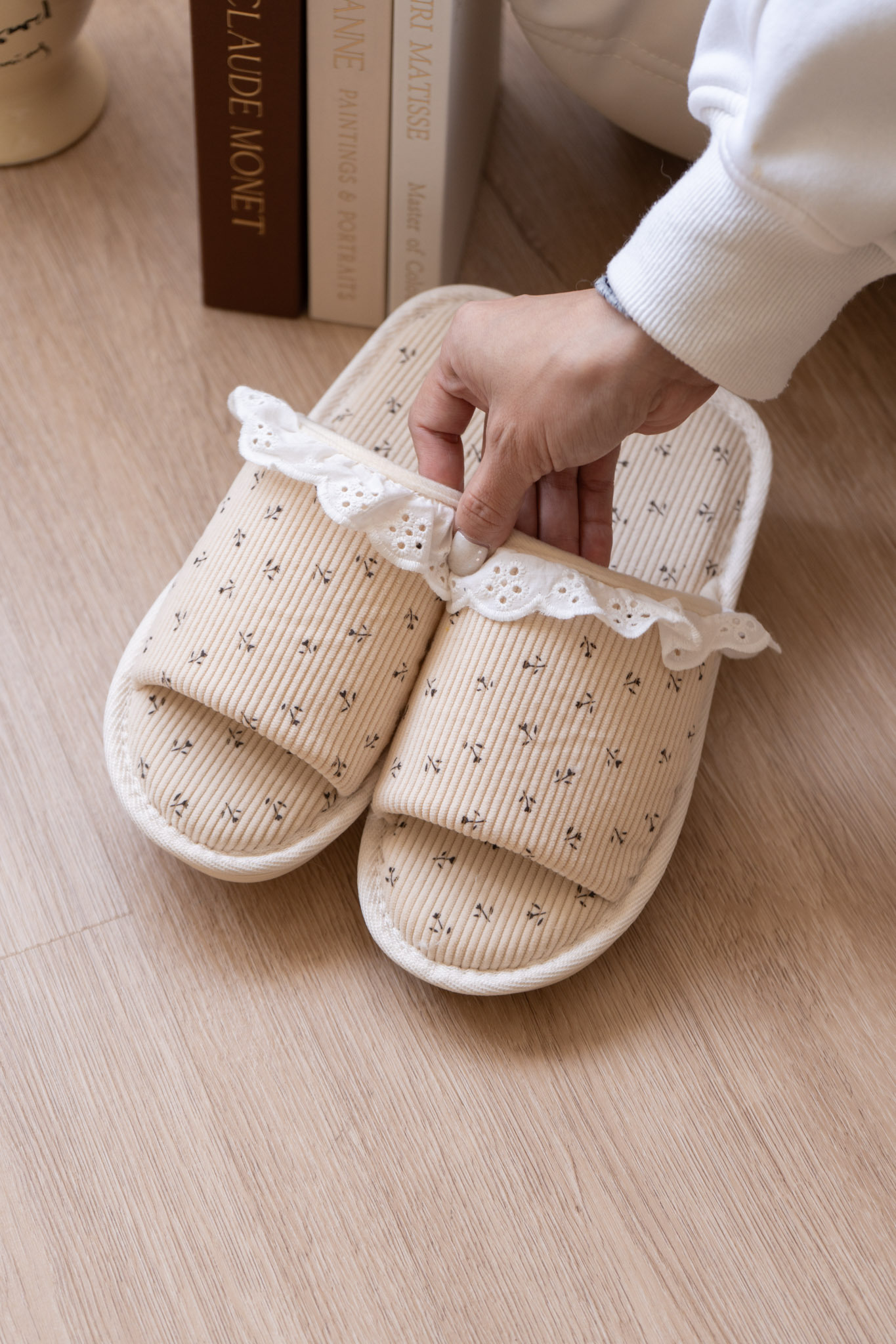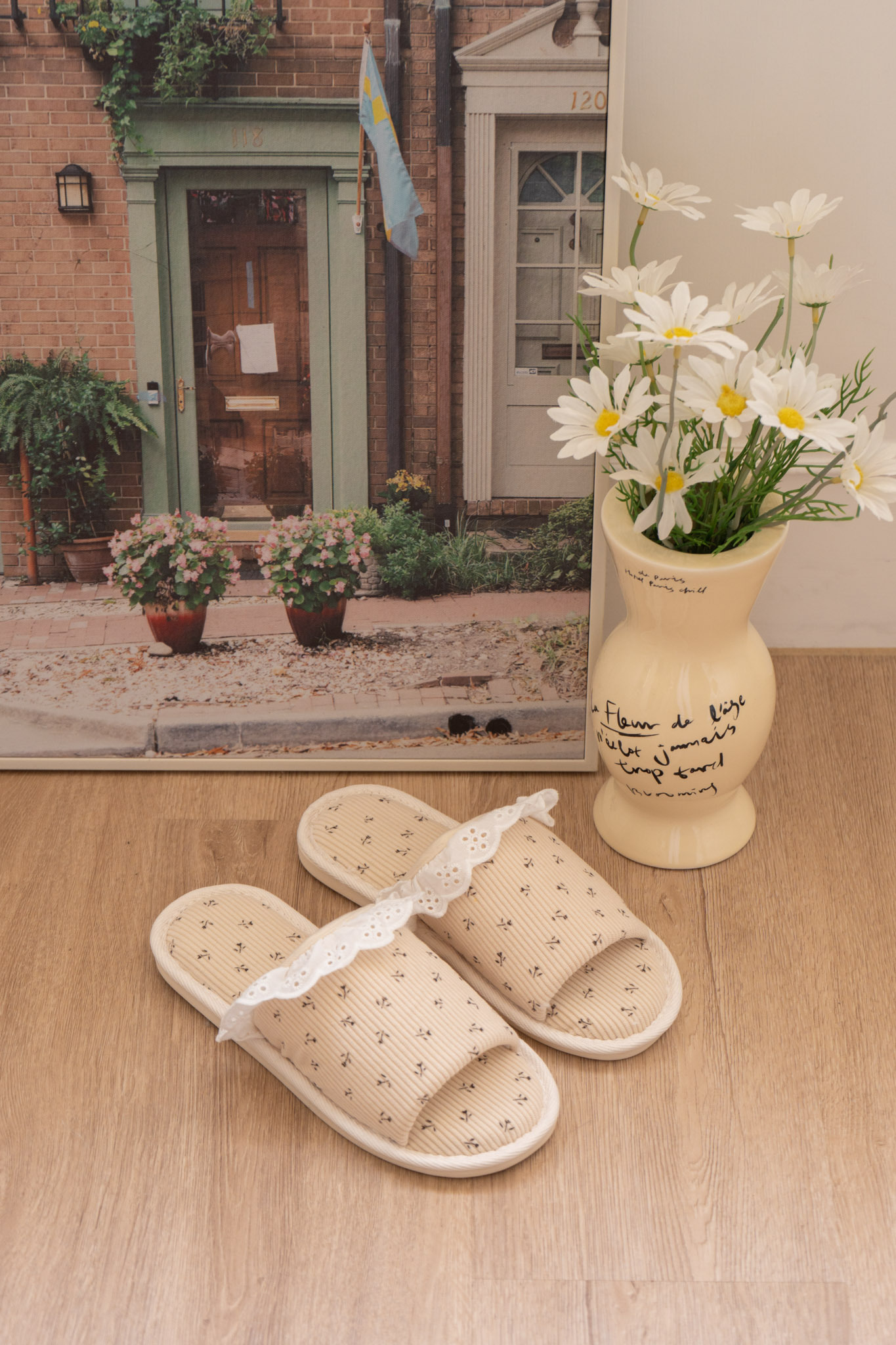 〔Grace 法式小碎花蕾絲室內拖鞋〕