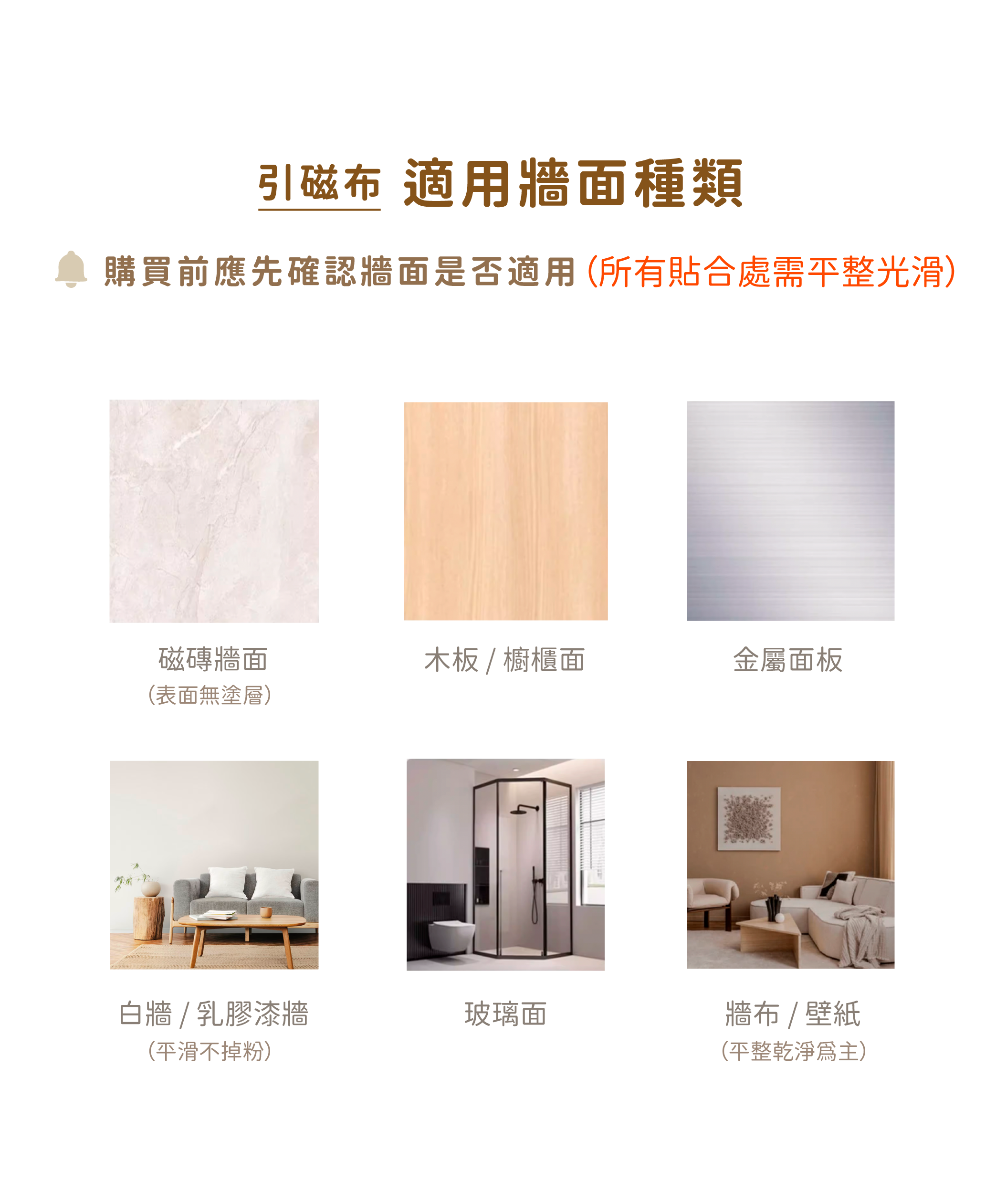 2. 牆壁一定要是平面,凹凸面會導致磁吸配件受力不均吸不緊