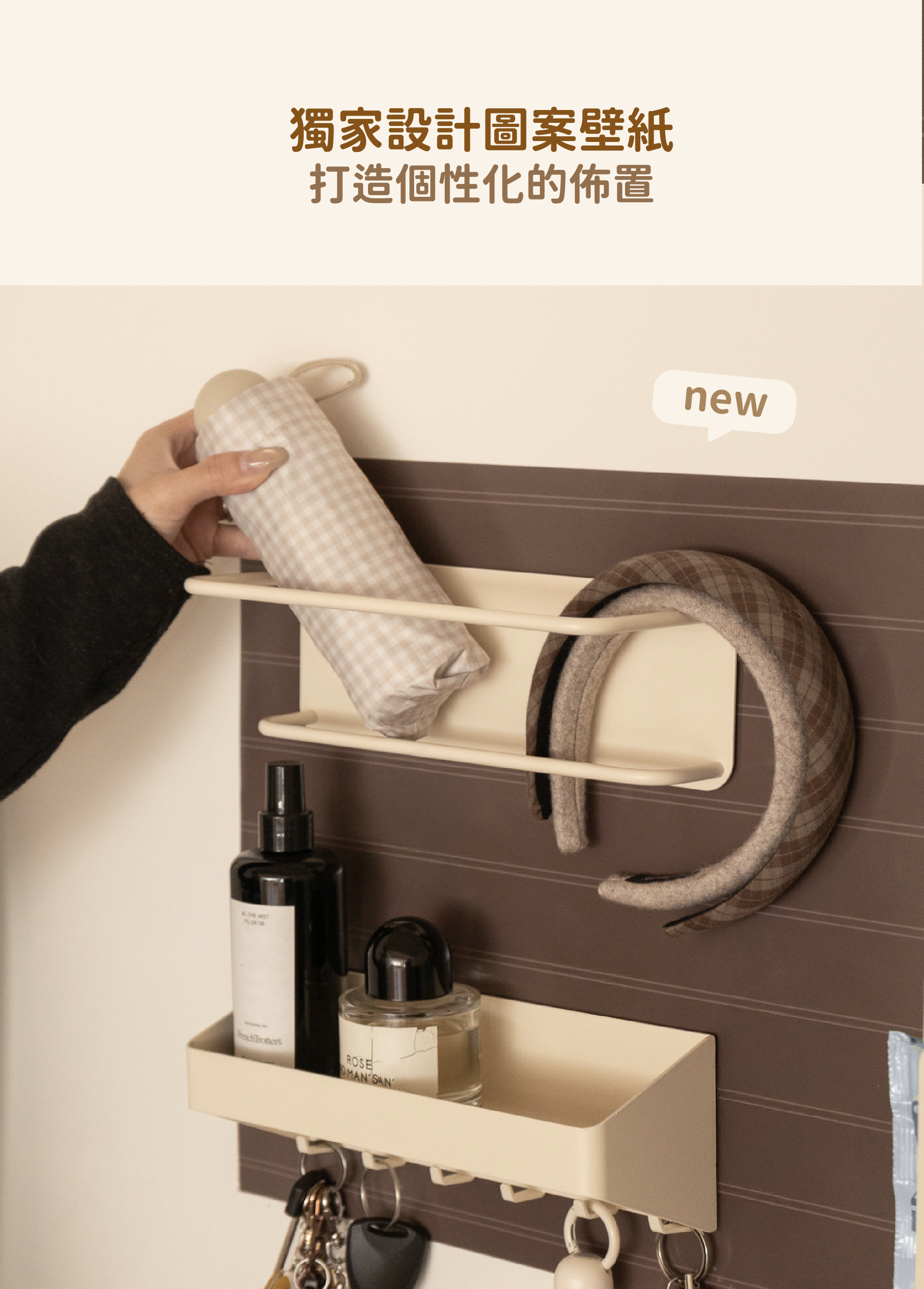 不鑽孔、不傷牆,收納位置跟著生活一起改變。