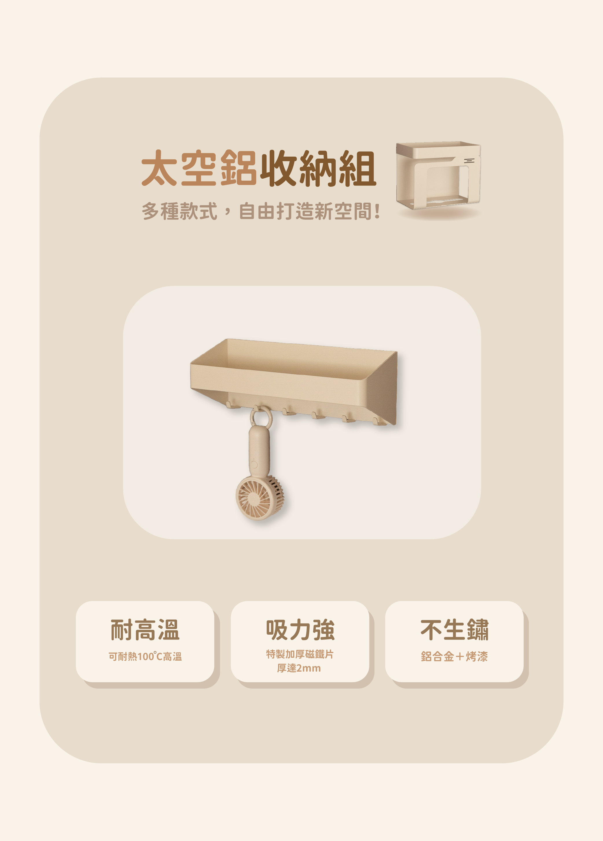 收納架配件:太空鋁合金+高強力磁鐵貼