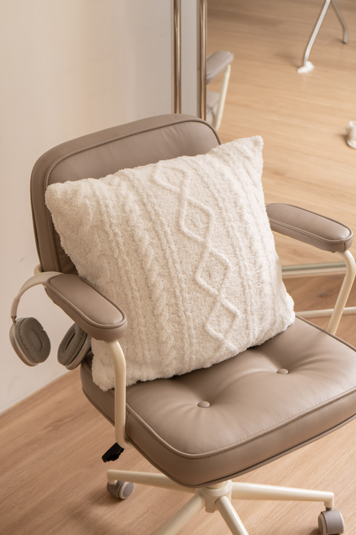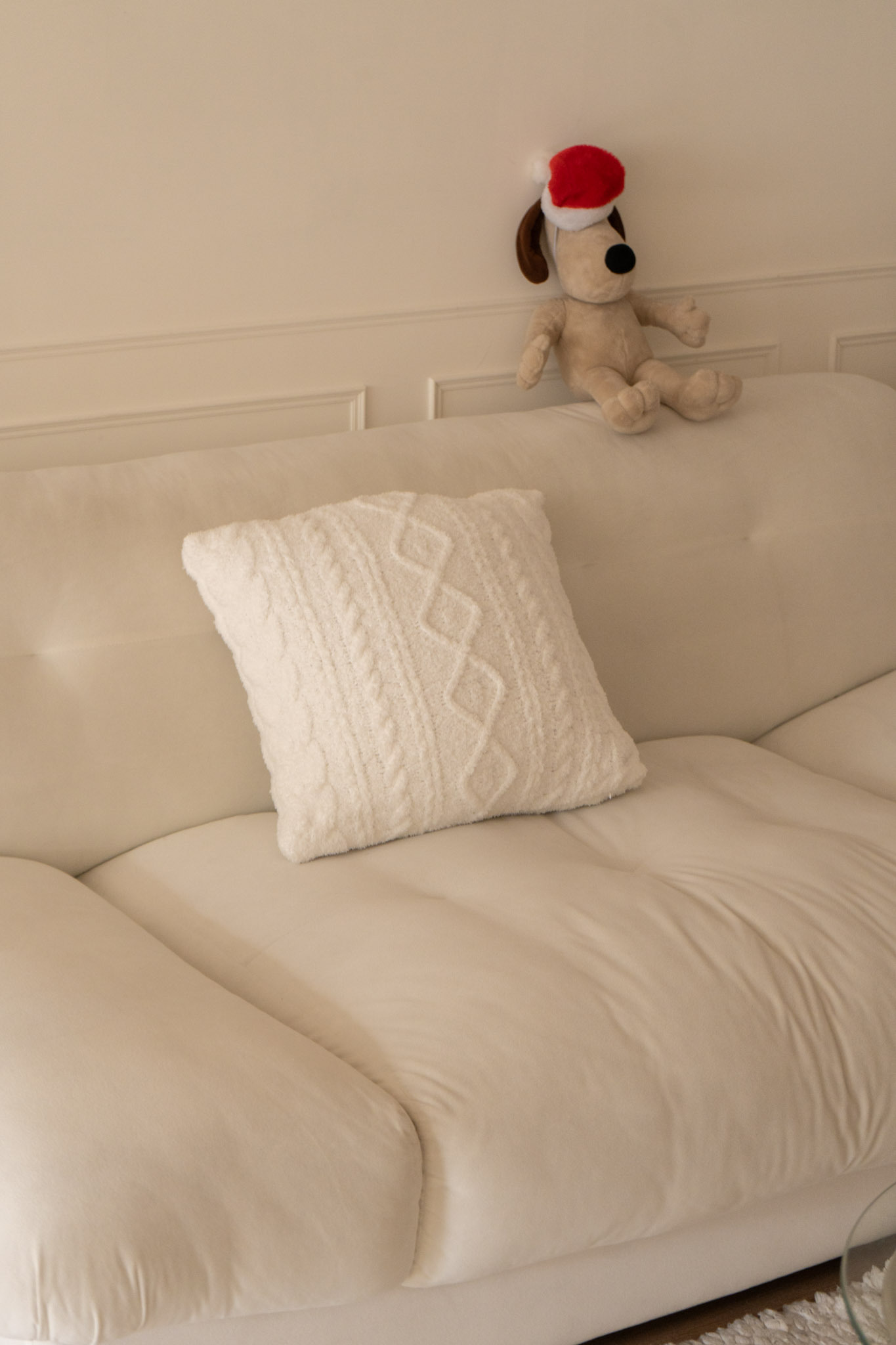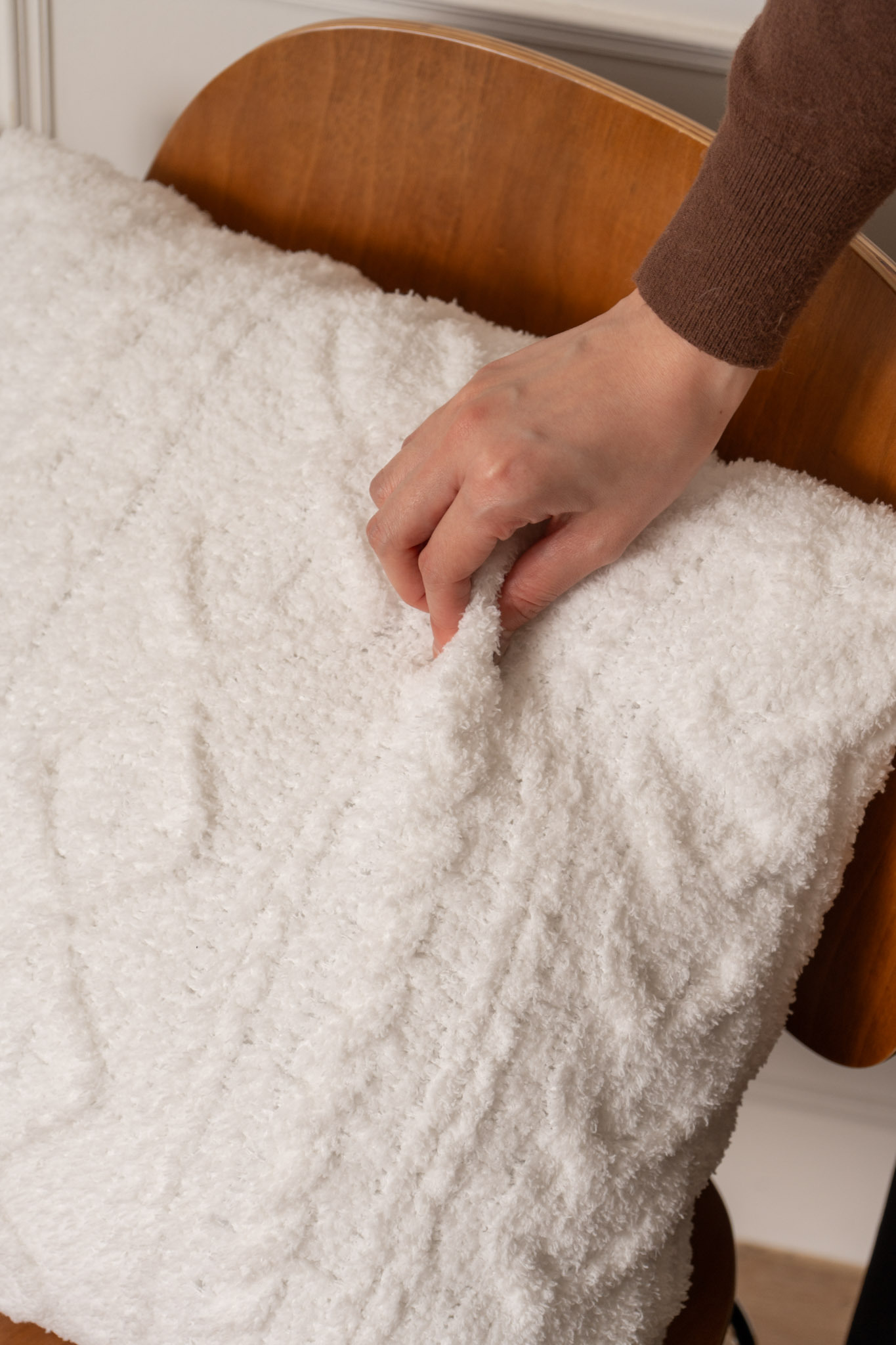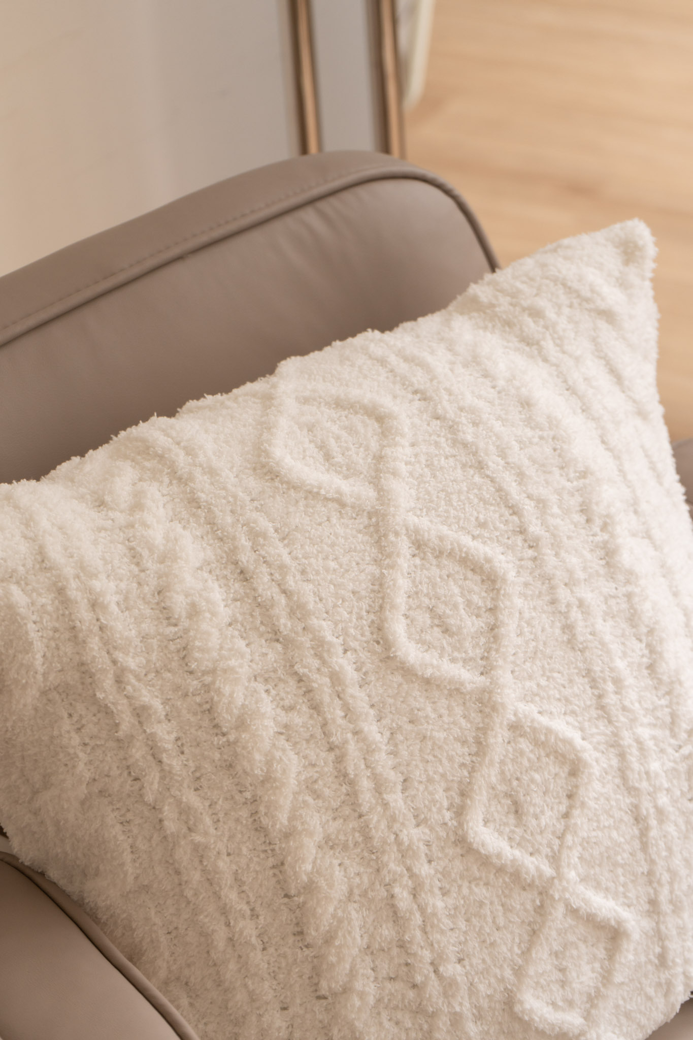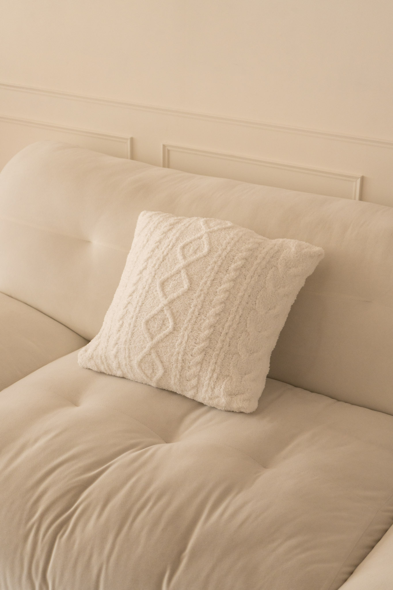立體織紋設計在純白色調中呈現細膩光影變化,簡約卻不單調,能輕鬆融入各式沙發、床頭或閱讀角落。布料具備良好透氣與吸濕特性,四季皆宜,冬日溫潤、夏日不悶。