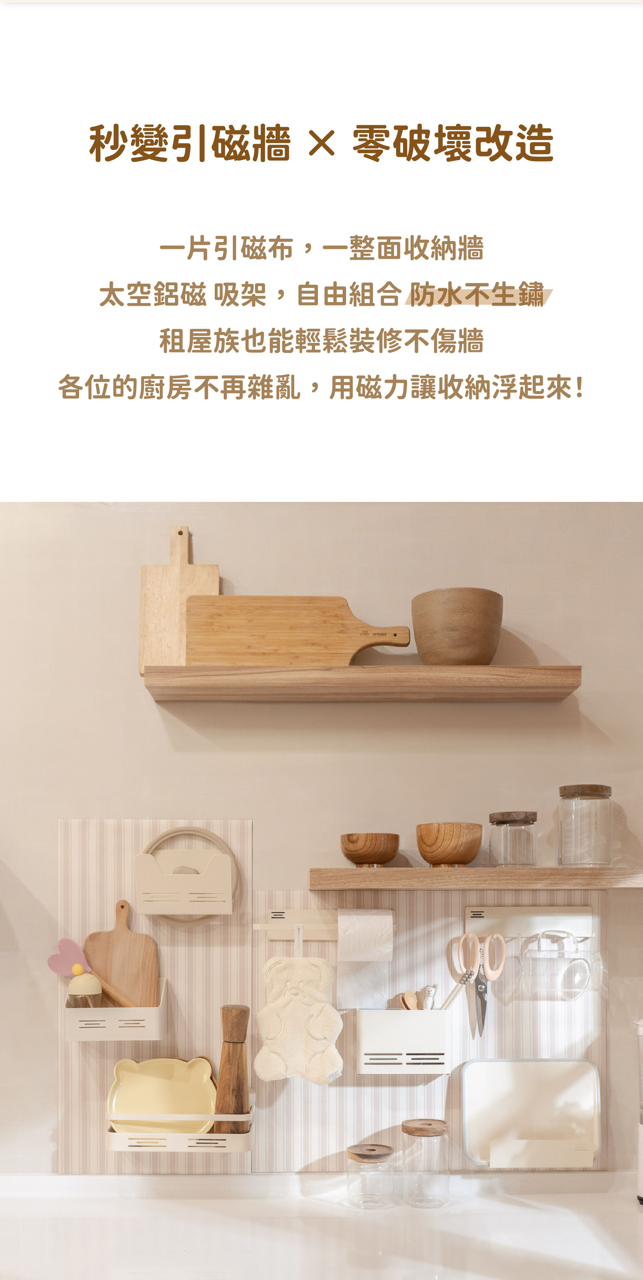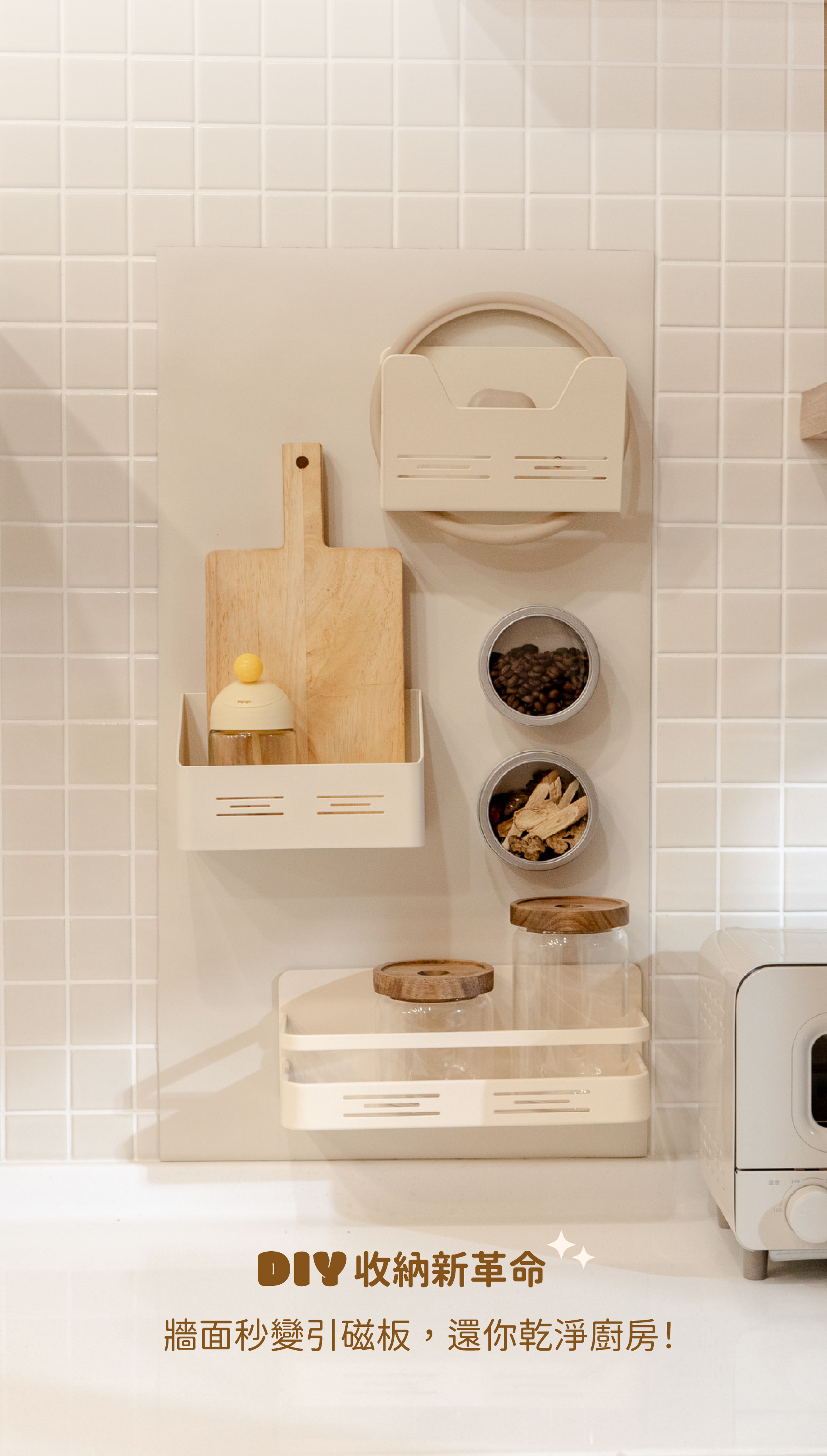 想像你的牆面,就像玩具積木一樣自由組合!這款由引磁布+磁吸收納架所組成的超強機能系統,是現代居家收納的新革命。